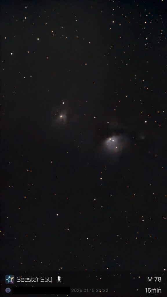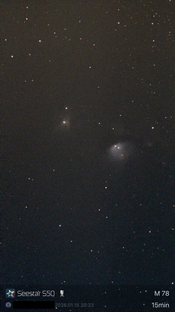 今回も、Seestar S50による撮影で、左はAI denoise後、右はdenoise前の写真です。